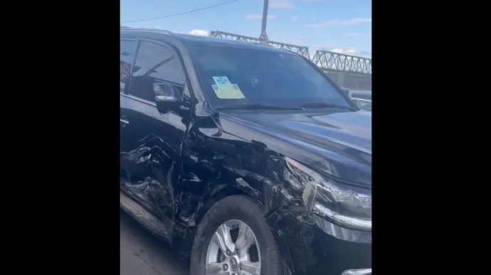 На лобовому склі автомобіля Lexus були прикріплені документи з символікою СБУ та КМДА. Зазвичай чорні автомобільні номери використовують на автомобілях ЗСУ, ДПСУ, ДСНС, МВС, Нацгвардії тощо.