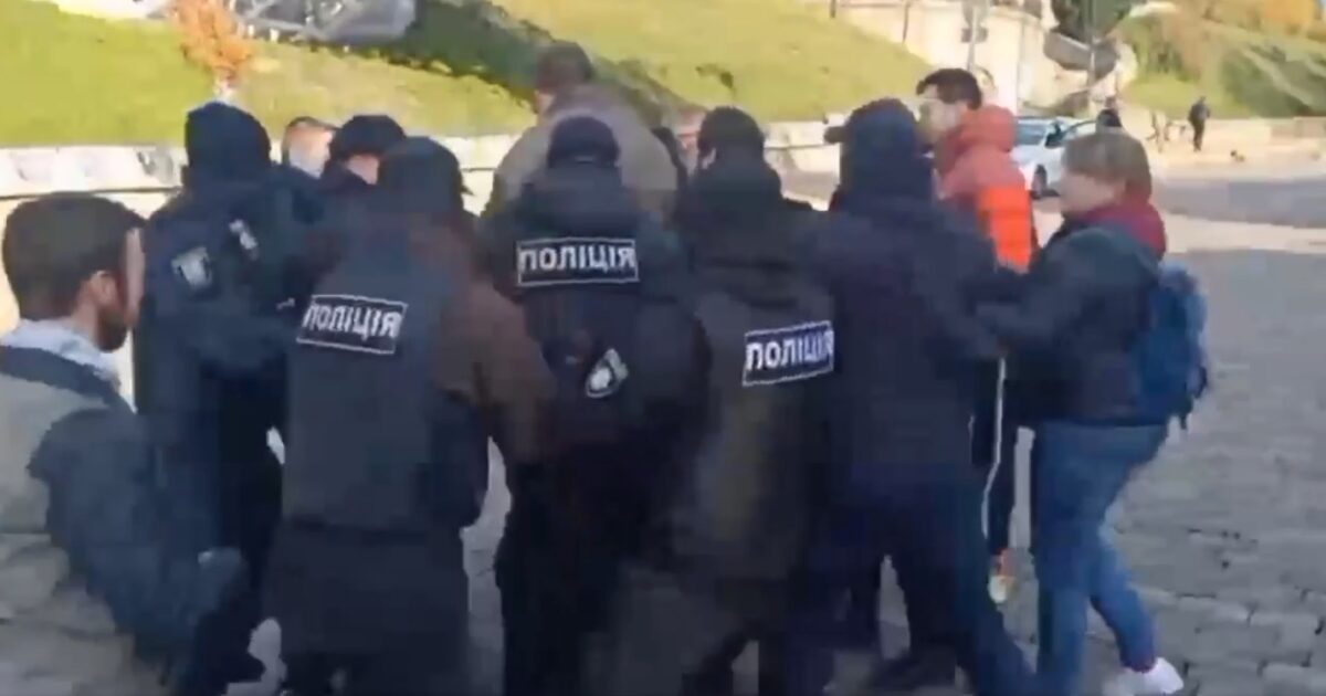 У Києві поліція з бійкою відібрала у активістів банер із закликом ввести санкції проти Коломойського