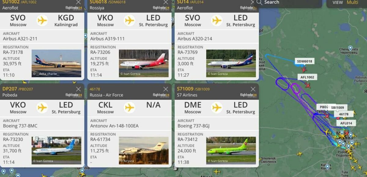 Дані сервісу Flightradar підтверджують, що літаки у бік Петербурга розвертаються до Москви.