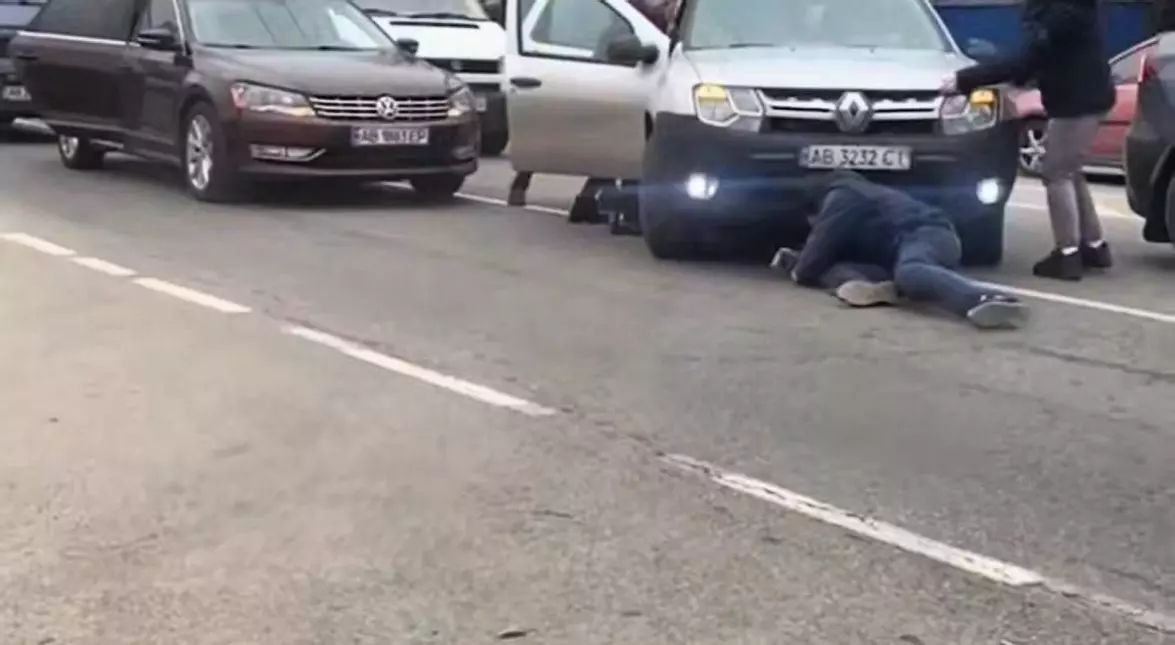 У Вінниці неподалік авторинку «Сатурн» автомобіль з військовими ТЦК бампером штовхав чоловіка просто посеред дороги. Відповідне відео з’явилося у соцмережах.