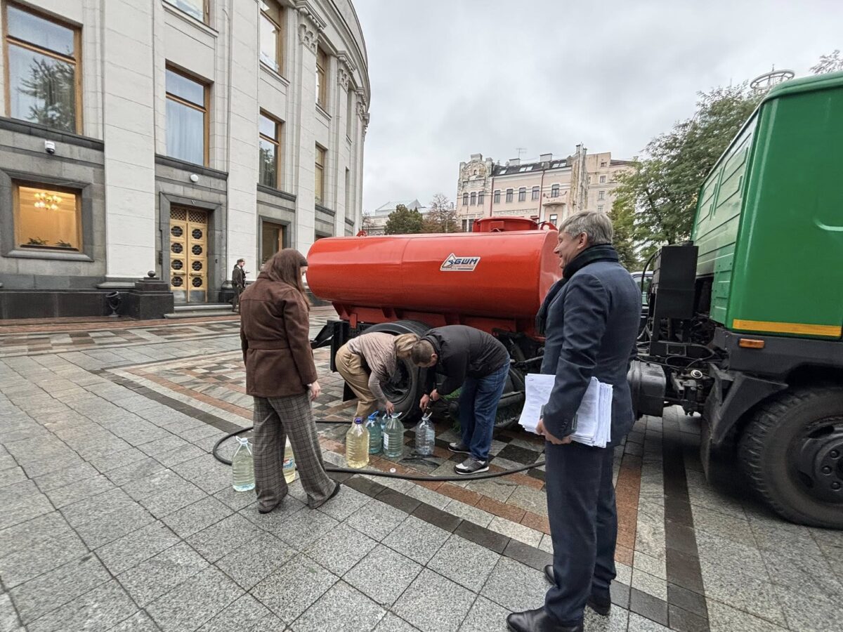 Окрім того, вона зазначила, що до Верховної Ради підвезли машину з технічною водою для базових потреб парламенту.