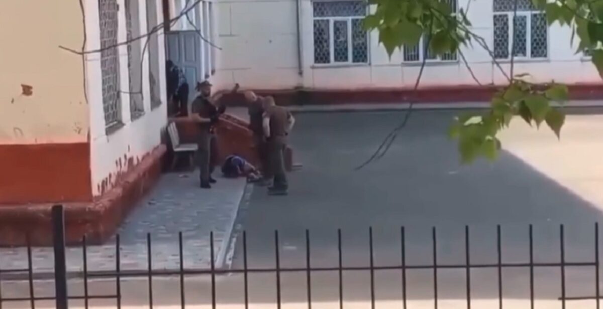 Інцидент стався в Чорноморську кілька днів тому, проте відео, зняте очевидцями, оприлюднили 28 травня. На ньому видно, як кілька співробітників охорони під час рейду помічають чоловіка у дворі школи. Потім один з бійців стріляє, імовірно, з помпової рушниці.