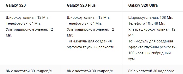 Якщо говорити про розміри, то S20 отримає 6,2 дюймовий дисплей, S20 Plus і S20 Ultra екрани на 6,7 і 6,9 дюймів відповідно. Всі дисплеї отримають отвір з фронтальною камерою в центрі. Її роздільна здатність складе 10 Мп у S20 і S20 Plus, і 40 Мп у Galaxy S20 Ultra.