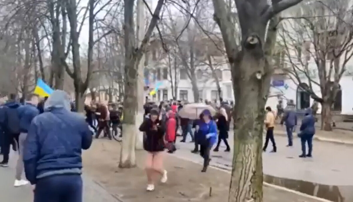 Жителі Каховки вийшли на мітинг. Російські військові почали стріляти