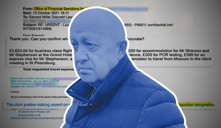 Санкції, запроваджені у Великій Британії та Європі у 2020 році, мали завадити будь-кому вести бізнес із Пригожиним. Тим часом велика кількість зламаних електронних листів свідчить про те, що Міністерство фінансів Великобританії у 2021 році, яким керував Ріші Сунак, видало спеціальні ліцензії, які дозволили олігарху обійти санкції та розпочати агресивну юридичну кампанію проти журналіста у лондонських судах.