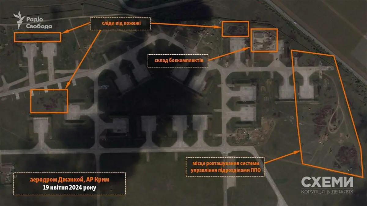 “На знімках ми бачимо точкові удари по засобам ППО, що вивело їх з ладу, та ураження складу БК ворога. Слід зауважити, що після нанесення ударів, більшість авіації була передислокована”, – пояснив у коментарі «Схемам» авіаексперт Анатолій Храпчинський.