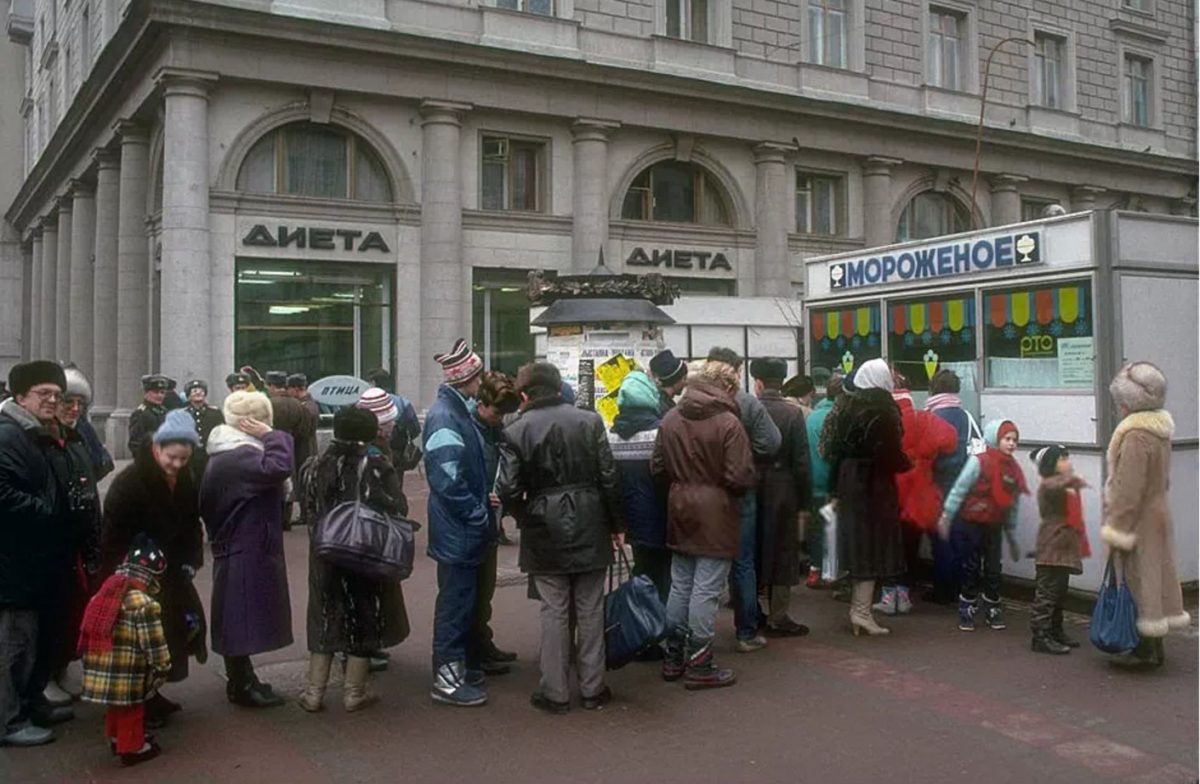 Что интересно — в последние советские годы ситуация стала меняться — начали открываться кооперативы, в страну стало попадать больше импортных вещей, и люди начали одеваться очень ярко, иногда даже слишком — это был такой себе неформальный протест против системы, которая десятилетиями одевала всех в мрачную одежду землистых цветов.