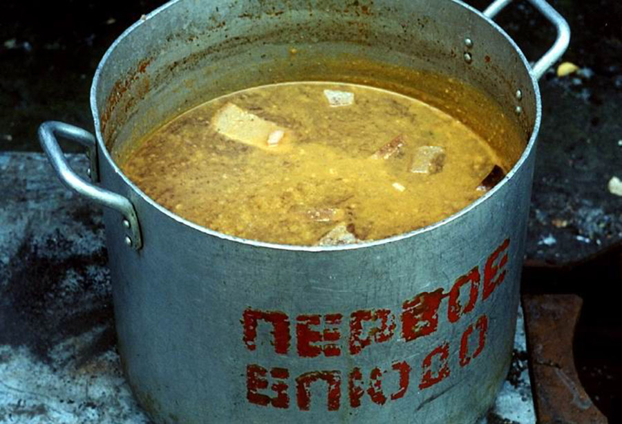 Чудо-изобретение всех советских хозяек. Картонная пачка пельменей высыпалась в чуть подсоленную воду, после чего туда рекомендовалось также добавить душистый перец горошком и лавровый лист. Получалось некое подобие бульона с пельменями — которое в СССР считалось полноценным и сытным блюдом.