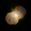 Звезда Эта Киля является крайне экзотической двойной системой, состоящей из, возможно, крупнейшей звезды Галактики массой в 120-150 Солнц и ее «небольшого» спутника, чья масса всего в 30-80 раз выше, чем у нашего светила. Давление света внутри недр звезды настолько велико, что вспышки активности внутри Эты Киля буквальным образом «срывают» внешние покровы звезды, выбрасывая их в открытый космос.