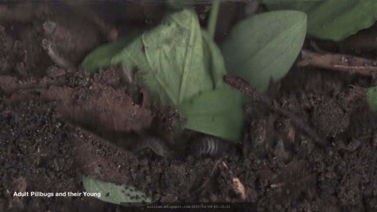 На видео можно увидеть рост корней и процесс разложения листьев и цветов.  Кроме того, под землей живет большое количество жуков и червей, за жизнью которых также можно наблюдать с помощью сканера.