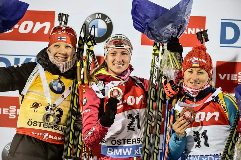 Семеренко прошла гонку без промахов, однако на лыжне уступила белоруске Дарье Домрачевой и финке Кайсе Макарайнен, промахнувшимся по два раза.
