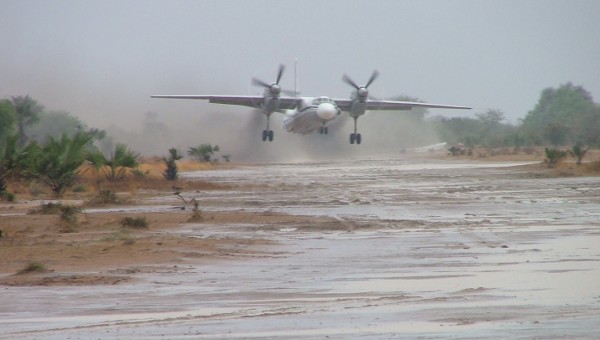 Украинский военно-транспортный многоцелевой самолёт Ан-32, совершил опасную, но зрелищную посадку в экстремальных условиях, прямо на землю.