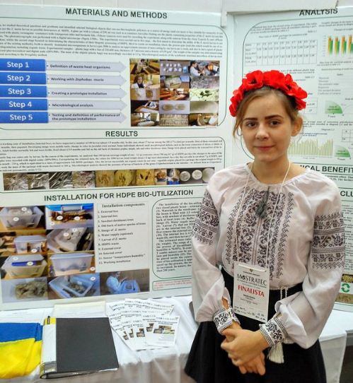 В частности, ученица 11 класса Мариупольского технического лицея Екатерина Малкина завоевала медаль благодаря проекту «Новый метод биогенной утилизации полиэтилена высокой плотности (HDPE)», который посвящен возможности определенного вида личинок переваривать полиэтилен.