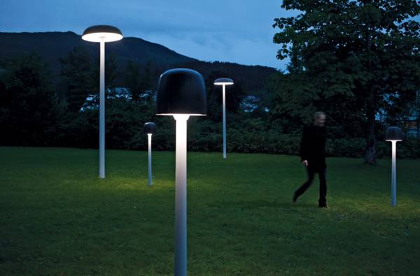 4. Грибовидные. Свое название эти уличные светильники получили, благодаря специальному колпаку, способному преломлять световые лучи и отражать их вниз. Они становятся прекрасным декоративным элементов для сада в темное время суток.