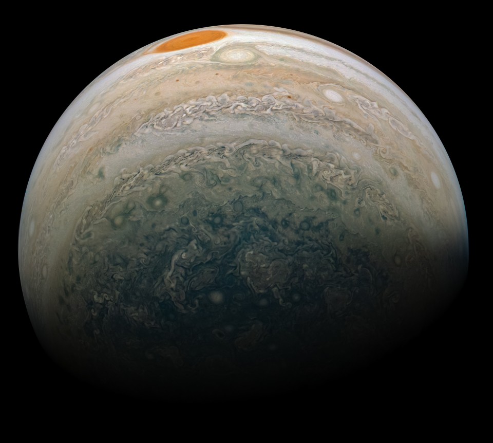 «Картинки» были переданы на Землю станцией Juno, изучающей Юпитер, из них составили целостное изображение.