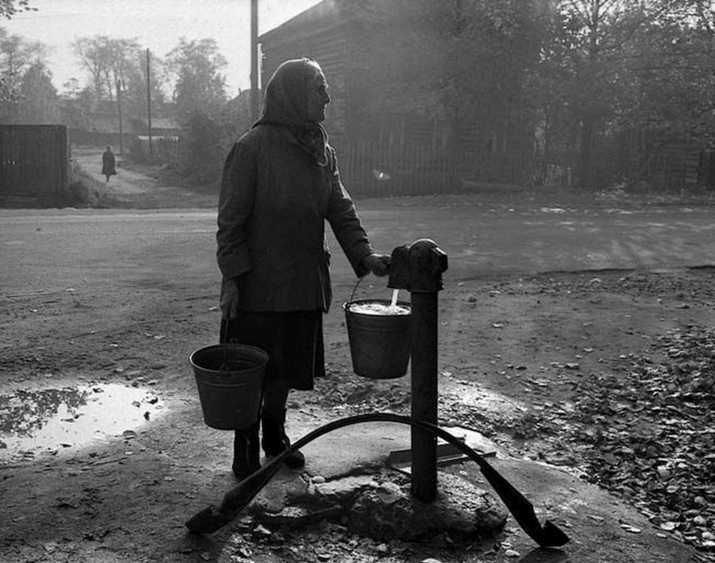 Бабушка пришла за водой на колонку. Зачем было тратить колоссальные деньги на какие-то там ракеты в стране, где большинство населения маленьких городков и поселков не имело ни водопровода, ни даже нормальной канализации? Риторический вопрос…