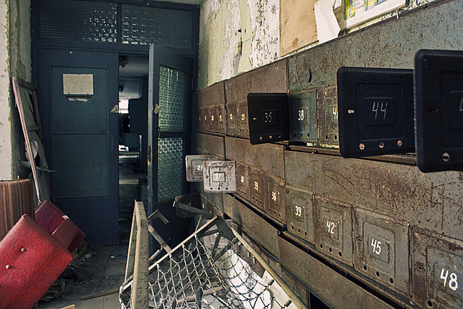 Сразу за входной группой в подъезде обычно начинаются почтовые ящики — во многих российских подъездах они часто бывают с сорванными и перекрученными какой-то неведомой страшной силой дверцами, а ещё иногда бывают просто сожженными. В Беларуси я помню такие штуки в некоторых неблагополучных минских районах в период девяностых годов — но уже давно такого не видел.