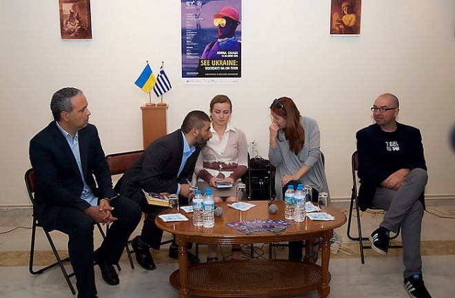 В течение трех дней зрители в Афинах имели возможность посмотреть фильмы «Евромайдан. Черновой монтаж», короткометражные фильмы украинских режиссеров: «Медик идет последним» Светланы Шимко и «Сэры и сеньоры» Александра Течинского. Состоялась дискуссия «Куда движется Украина после Евромайдана» с участием украинских и греческих экспертов: философа Владимира Ермоленко, журналистки Татьяны Огарковой, профессора с геостратегии Никоса Лигероса и историка Михалиса Варласа.