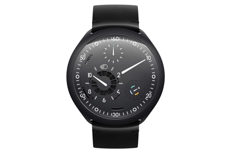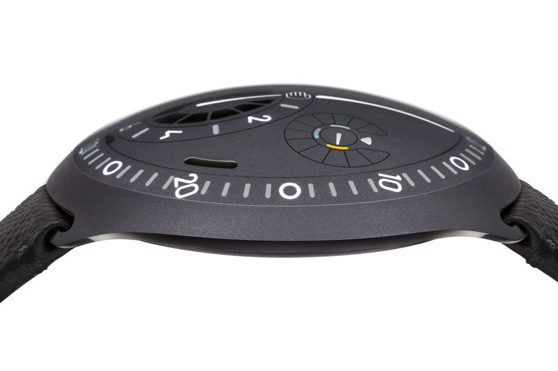 Корпус часов калибра 45 мм изготовлен из титана, а циферблат защищает сенсорное сапфировое стекло.