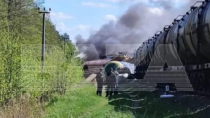 Сообщается, что на перегоне Рассуха-Унеча железнодорожный состав с 60 вагонами, груженый нефтепродуктами и пиломатериалами, сошел с рельс из-за повреждения полотна. По предварительной информации, незадолго до этого произошел подрыв железной дороги.