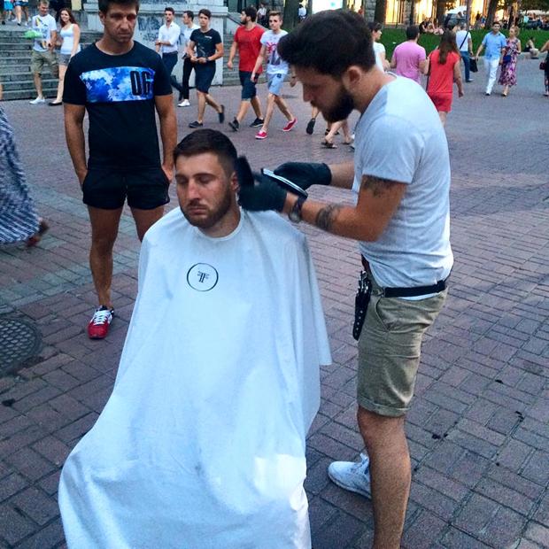 В центре Киева парикмахер решил изменить жизнь бездомным, делая им бесплатные стрижки