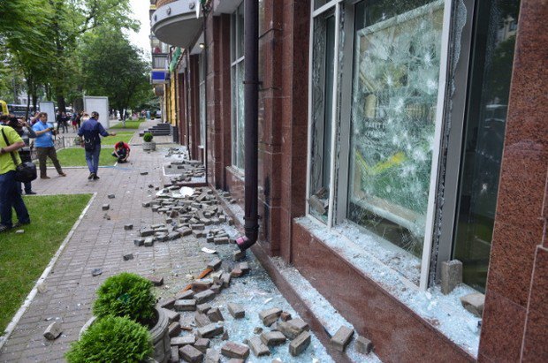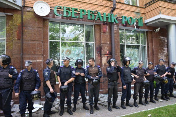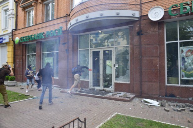 В центре Киева разгромили отделение Сбербанка России. ФОТО