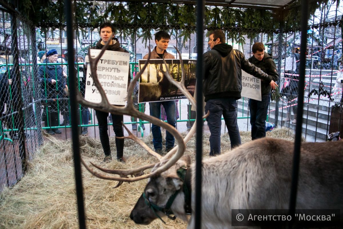 В центре Москвы активисты забаррикадировались в клетке с оленем. Об этом пишет 21 декабря агентство «Москва».