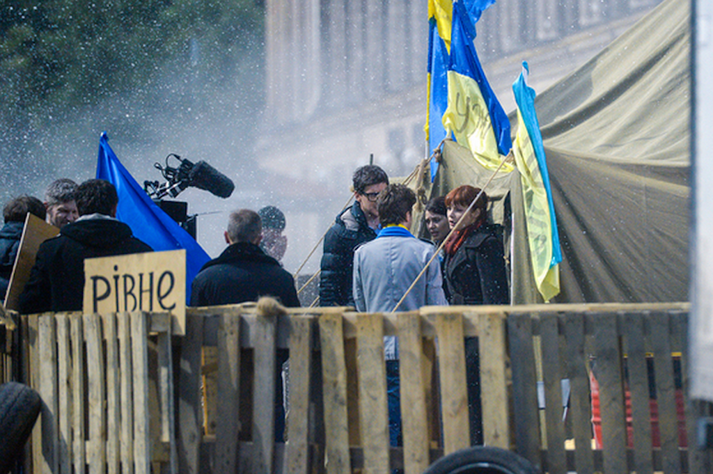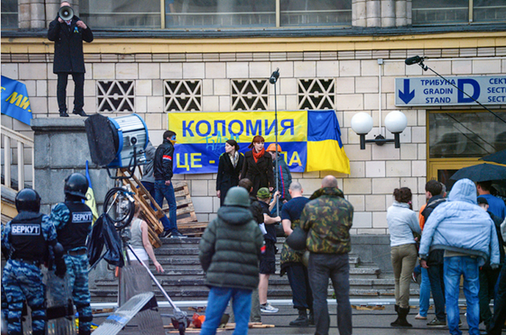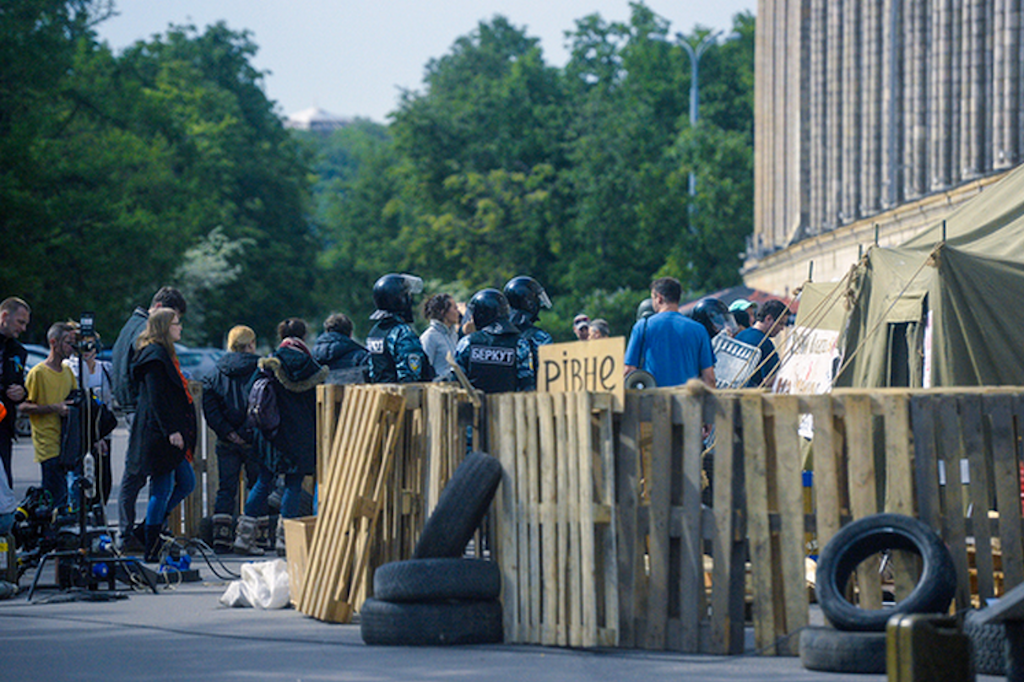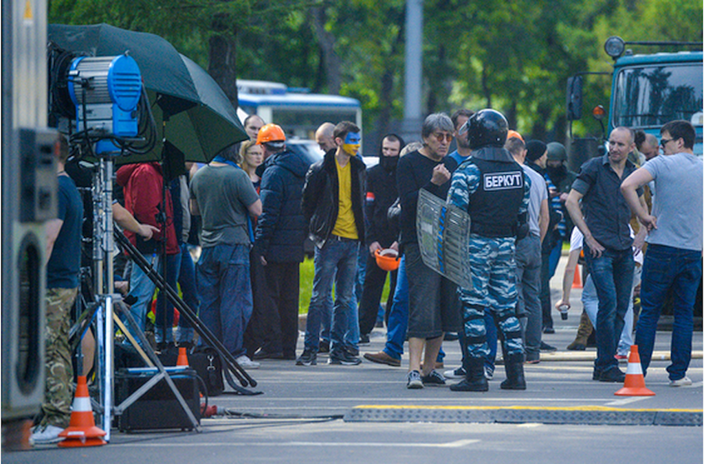 Российская пропаганда отстроила в центре Москвы киевский майдан Независимости с палатками, покрышками, коктейлями «Молотова», украинскими флагами и конечно же с жестоким, но таким любимым в России отрядом МВД «Беркут».