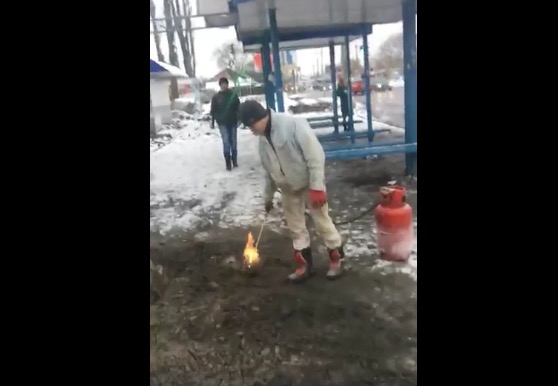 В Черкассах рабочие с помощью газовой грелки топили снег, чтобы провести работы по укладке тротуарной плитки. Соответствующее видео опубликовал в Facebook общественный активист Алексей Ющенко.