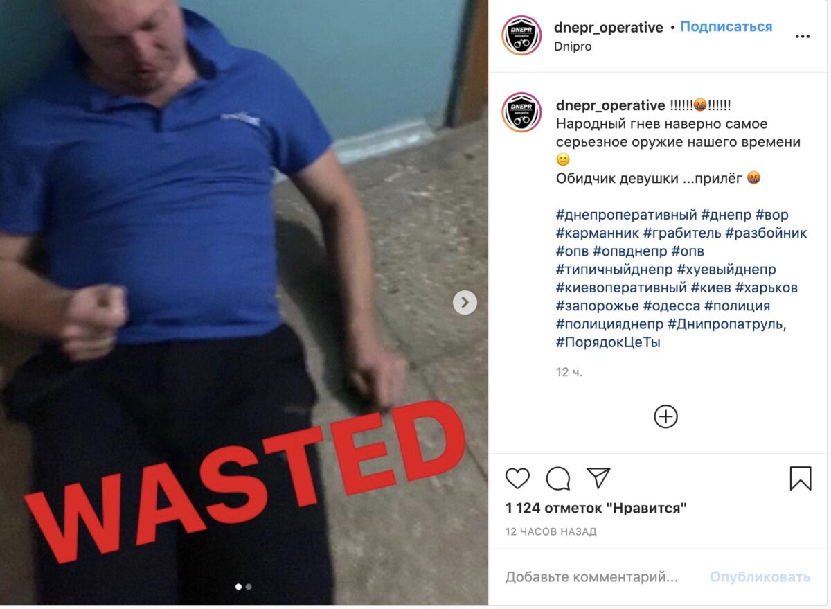 Позже в паблике «Днепр Оперативный» в Instagram появилось фото нападавшего на девушку мужчины, который лежит на полу в каком-то здании.