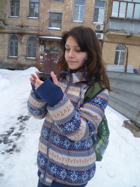 Была одета: куртка зелено-синего цвета средней длинны, штаны синего цвета (цвет броский в глаза), серая шапка и шарф, рюкзак серого цвета в клеточку. При себе имела фотоаппарат Canon и моб.телефон Microsoft Lumia 535.