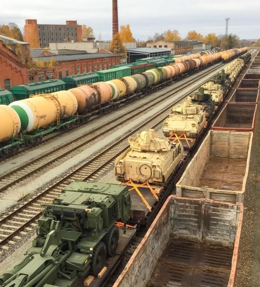 В эшелоне находится 40 единиц тяжелой техники, в том числе четыре танка M1A2 Abrams, 10 боевых машин пехоты Bradley. Кроме этого, в Эстонию впервые прибудут три самоходные артиллерийские установки Paladin. На будущей неделе сюда прибудет также два саперных танка и техника поддержки.
