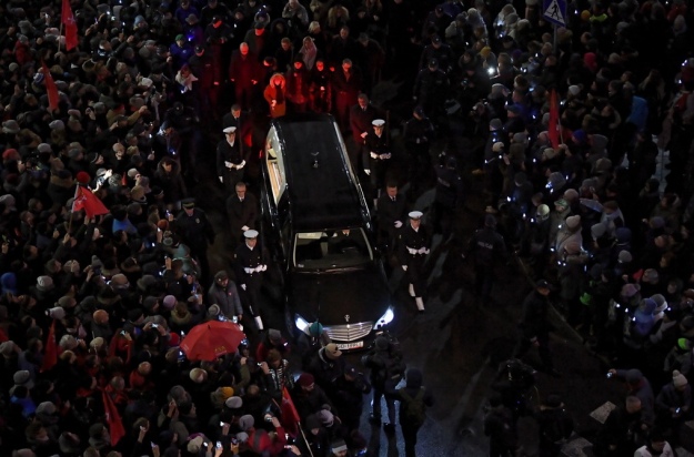 Покойного проносят от Европейского центра солидарности по улицам города к базилике Вознесения Пресвятой Девы Марии. Там он будет погребен 19 января.