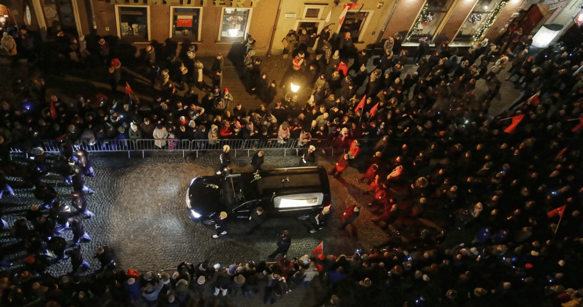В польском городе Гданьск в траурной процессии переноса гроба с телом убитого мэра Павла Адамовича принимают участие тысячи людей. Об этом сообщает RMF 24.