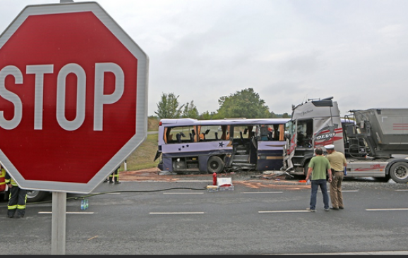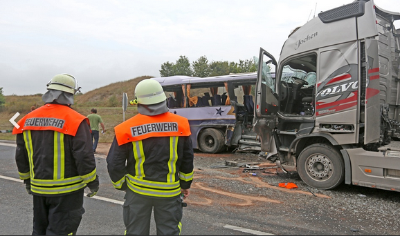 В Баварии школьный автобус столкнулся с грузовиком, в результате аварии пострадало 19 детей и 2 взрослых