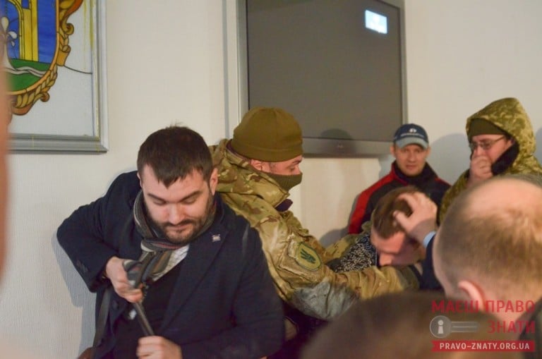 «Сторонники мэра попытались не пустить в зал «свободовцев», однако их хватило всего на несколько секунд: из коридора в сессионный зал распылили слезоточивый газ, одновременно в зал ворвалась группа мужчин, которые бросились к секретарю горсовета Алексею Здоровцу..», — говорится в сообщении.