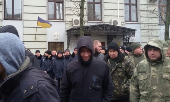«В 12 часов, когда здесь возле прокуратуры начали собираться представители разных групп, общественных организаций, в том числе представители общественной организации «Сотня льва», которая еще называет себя «Общественным контролем», пока готовился пикет, выставлялась звуковая аппаратура, в толпе произошла драка. Люди в черных куртках, которые пришли на пикет вместе с «Сотней льва» избили одного из активистов одной из общественных организаций, били его ногами, разбили лицо, а также порвали несколько плакатов с которыми люди пришли в прокуратуру», — сообщает корреспондент.