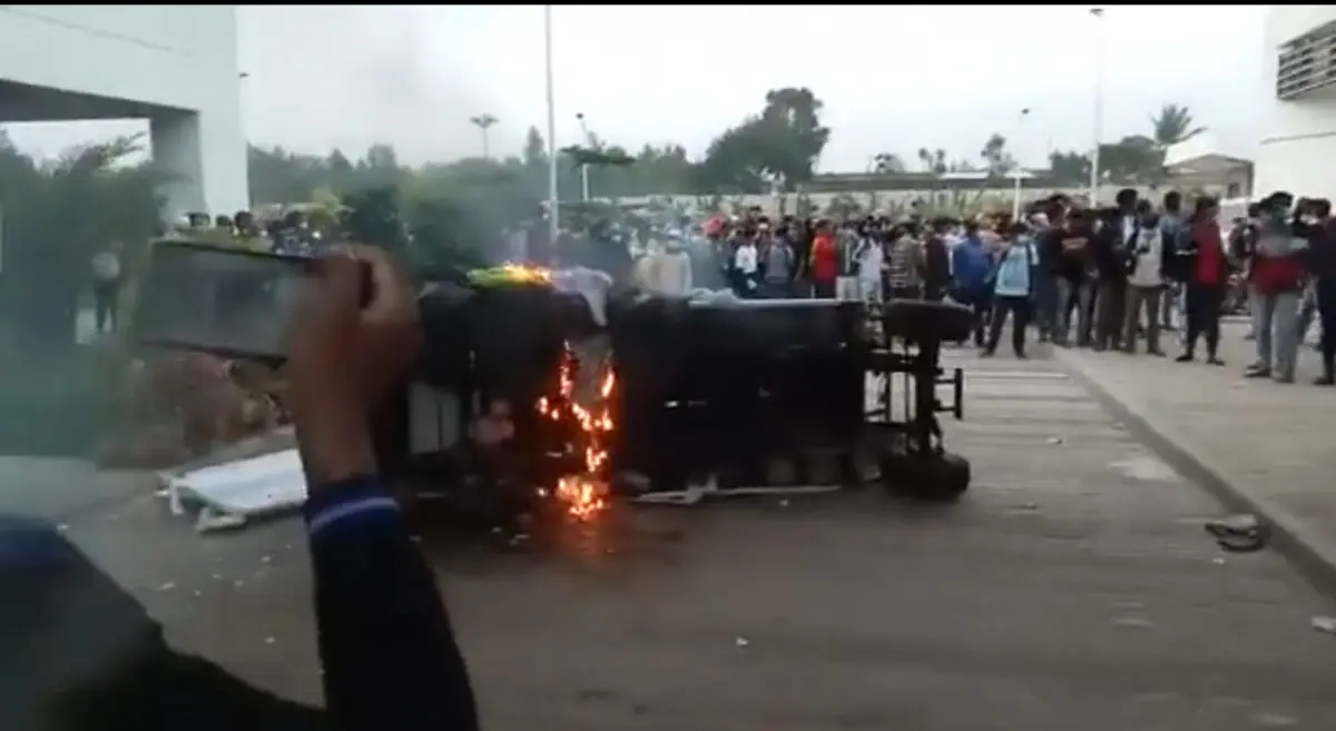 Рабочие сожгли возле завода как минимум один автомобиль. В последствии участников беспорядков дубинками разогнали местные полицейские.