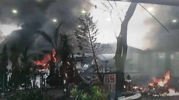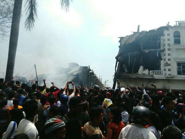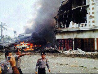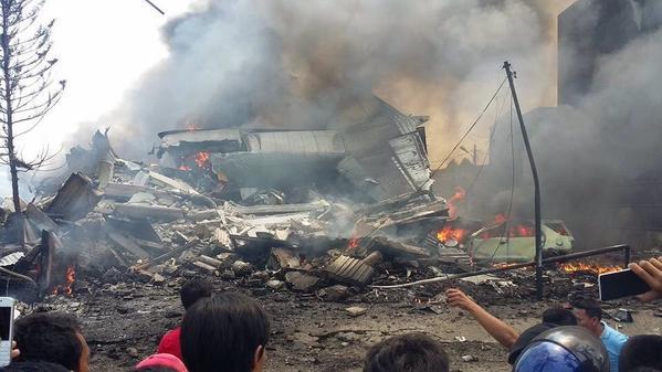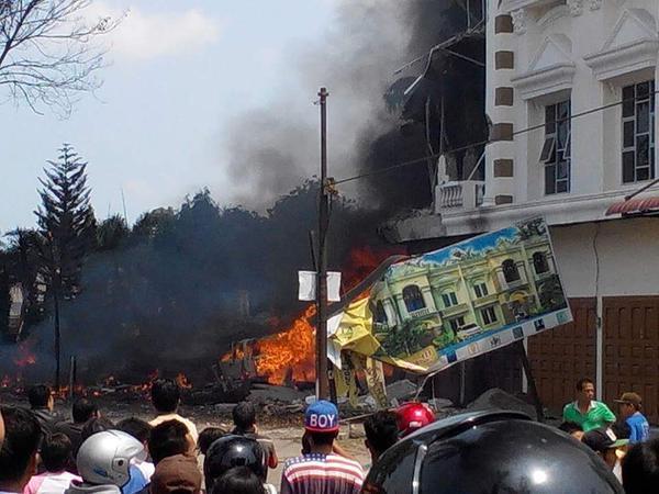В Индонезии военно-транспортный самолет упал на жилые районы города Медан.