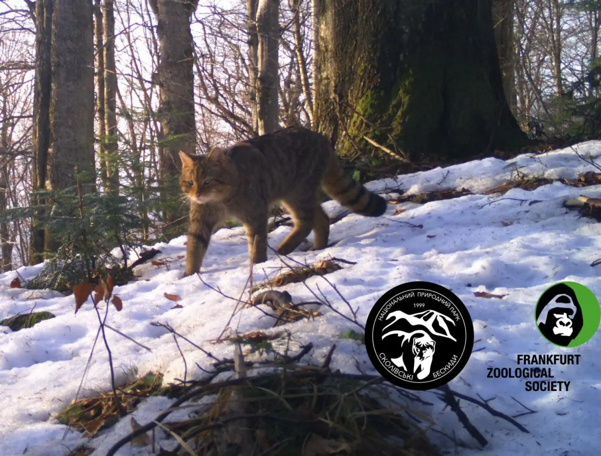 «Речь пойдет о пушистом «тихоходе», коте диком (Felis silvestris). Вид занесен в Красную книгу Украины. Его внешность напоминает обычную серую домашнюю кошку, но по размерам, дикий обитатель – вдвое больше и имеет характерные особенности: относительно короткий хвост с несколькими кольцевыми темными полосами и притупленным черным кончиком; на концах ушей хорошо выражены кисточки и черные полоски, идущие от глаз к вискам. Глаза, как правило, очень светлые», — сказано в сообщении.