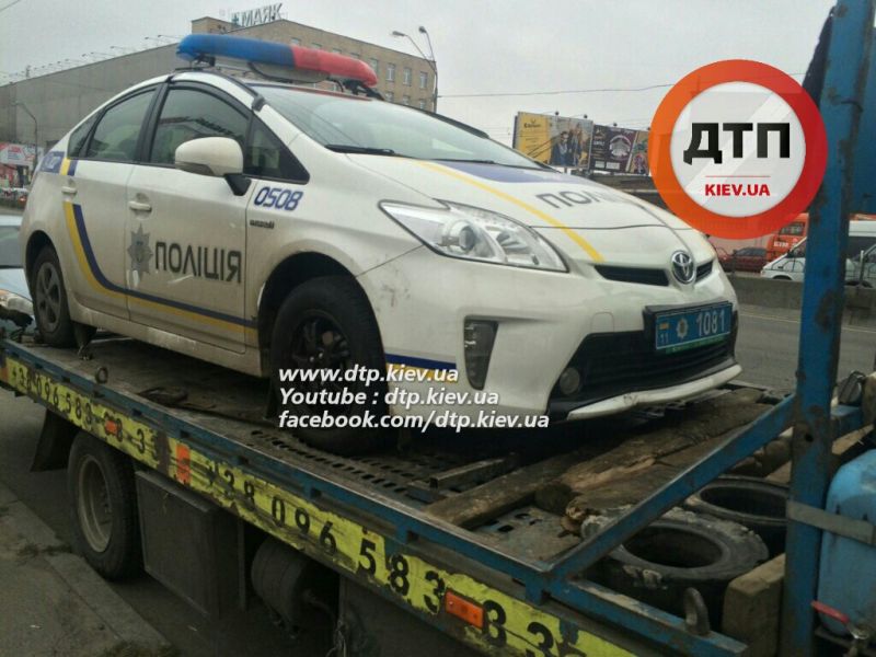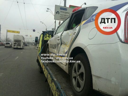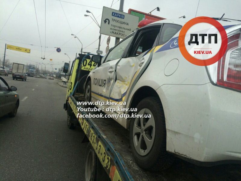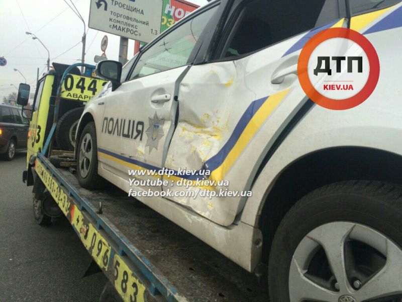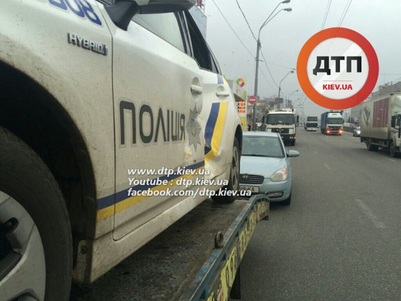В Киеве на Московском проспекте на Петровке произошла авария с участием маршрутки и автомобиля патрульной полиции Toyota Prius. Соответствующее видео было опубликовано на канале videoprobki в Youtube.