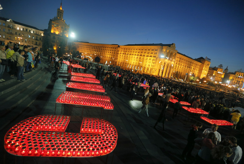 В центре Киева в воскресенье, 12 октября, состоялась акция «Зажги свечу нашим Героям» в поддержку участников АТО, а также памяти Героев Небесной сотни.