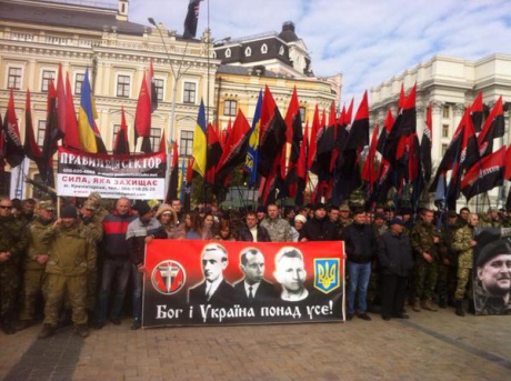 Сегодня, 14 октября, около 2 тысяч активистов ВО «Свобода», Организации украинских националистов, Конгресса украинских националистов и «Правого сектора» собрались на Михайловской площади, чтобы провести «Марш Свободы».