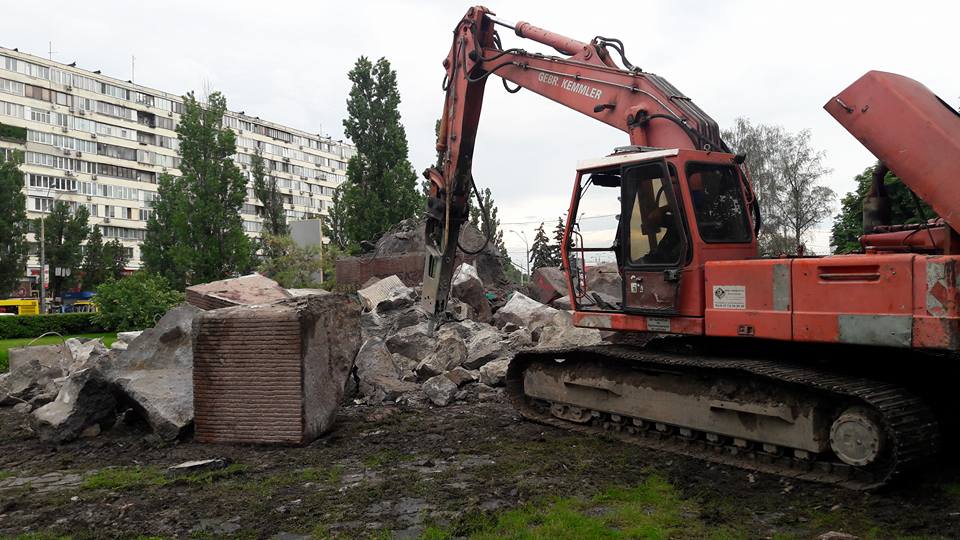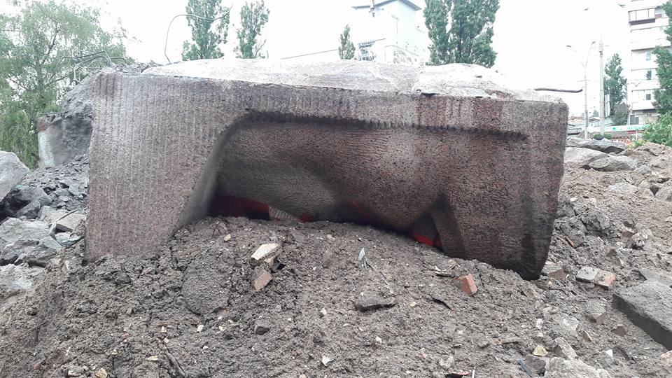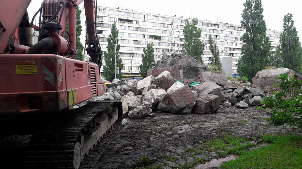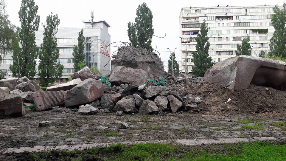 «Все что осталось от памятника чекистам в Киеве. Снос идет даже в праздничный день», — написал журналист.
