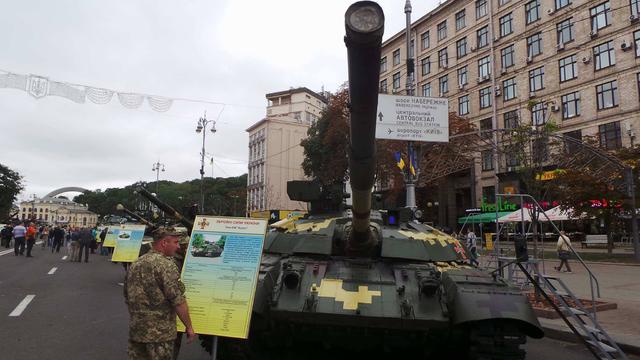 Сегодня в Киеве на ул. Крещатик и Майдане Незалежности открылась выставка военной техники «Мощь непокоренных». Работать выставка будет до 27 августа.