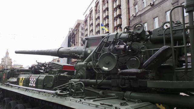 В центре столицы представлены более 50 единиц боевой техники и вооружений — самоходные артиллерийские установки, танки, боевые машины пехоты, бронетранспортеры, грузовые и санитарные автомобили.