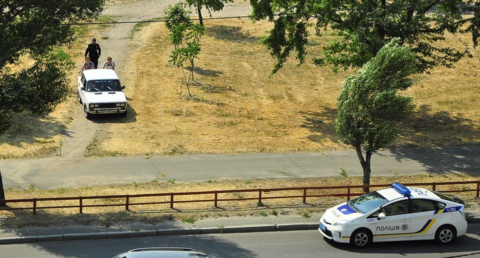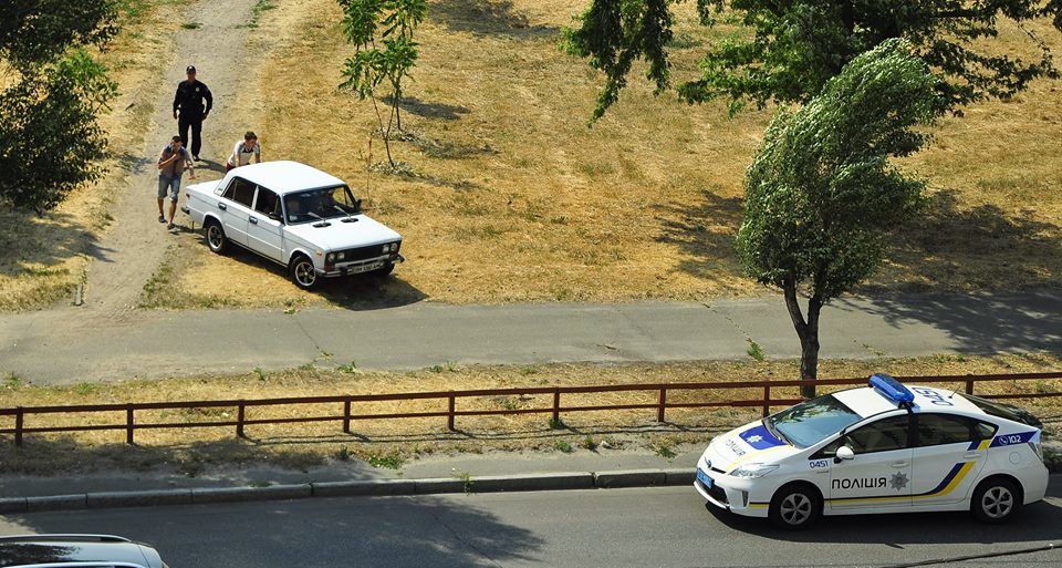 «Вызвал, потому что постоянно заезжают на машинах в парк, и бухают… Приехали через 10 минут. Но и алкаши не торопились… Не знаю, что они им говорили, но поехали быстро. Причем авто само не ехало, и патрульный помогал толкать эту колымагу», — рассказал Лазаренко.