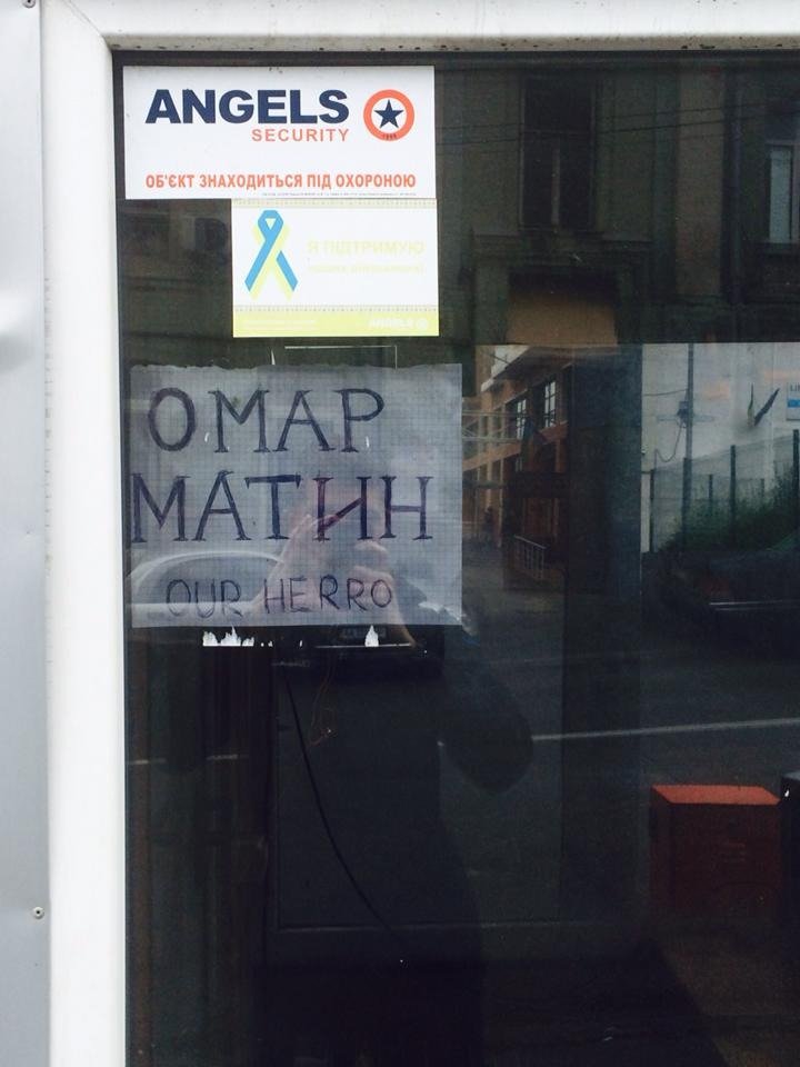 На будке охранной фирмы в столице, на Круглоуниверситетской улице вывесили плакат, поддерживающий Омара Матина, который расстрелял 50 человек в гей-клубе в Орландо. Об этом на своей странице в Фейсбуке сообщил пользователь Владимир Хенгистов.