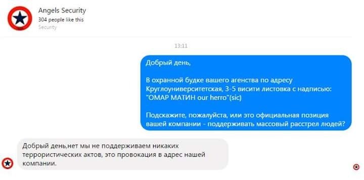 При этом руководство фирмы назвало это событие провокацией и заявило, что не поддерживает никаких провокаций. В свою очередь ЛГБТ-активист Зорян Кись подчеркнул, что фирма Angels Security охраняла правопорядок на многих мероприятиях в поддержку секс-меньшинств.