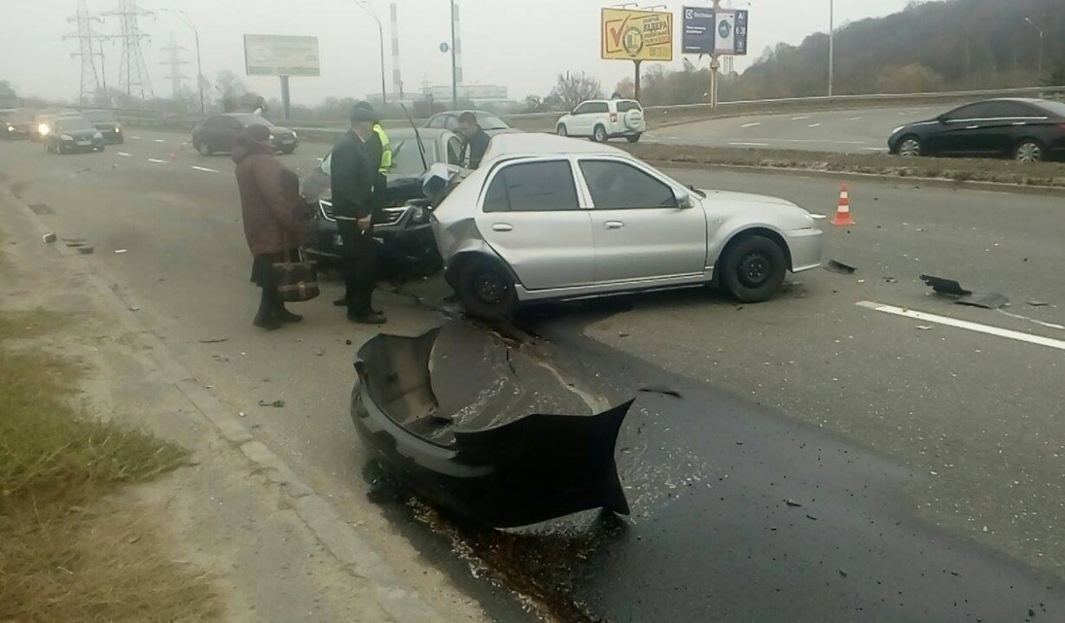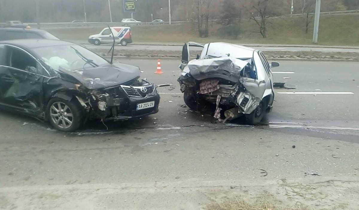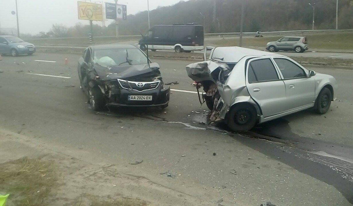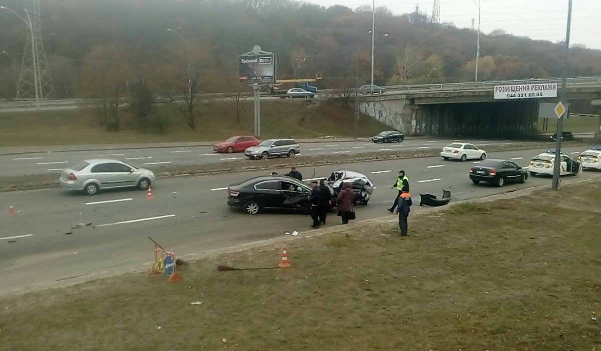 В Киеве сегодня утром произошло масштабное ДТП с участием трех автомобилей на улице Саперно-Слободской.